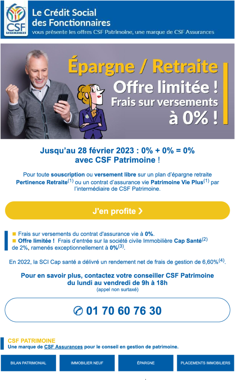 0% + 0% = 0% avec CSF Patrimoine !