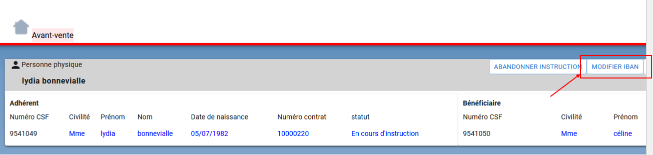Je clique sur Modifier IBAN.