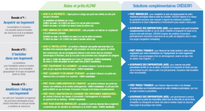 L’ALPAF propose aux agents des ministères économiques et financiers, selon leur situation et certaines conditions d’attribution, une offre étendue d’aides et de prêts sans intérêts. Pour solliciter les prêts ou aides proposés par l’ALPAF les agents peuvent directement vérifier leur éligibilité en ligne sur le site de l’ALPAF et envoyer leurs dossiers ou ils peuvent se rapprocher de leur délégué départemental d’action sociale. Les aides et prêts au logement accordé par l’ALPAF contribuent :