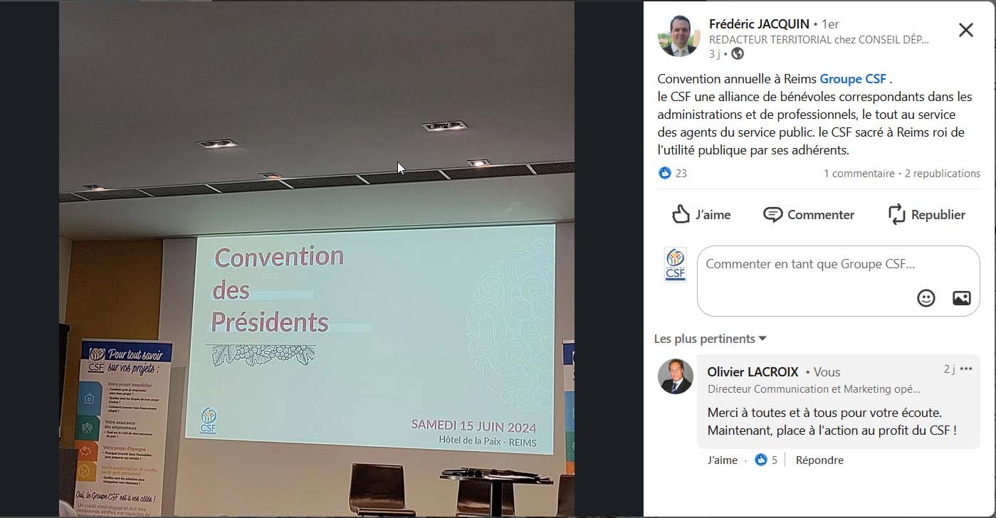 Retours du Congrès CSF qui s’est tenu ce week-end à Reims.