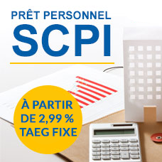 Nos prospects ou adhérents bénéficient désormais d’un prêt personnel leur permettant de financer l’acquisition de parts de SCPI de 10 000 € à 30 000 €* sur 12 à 84 mois au taux nominal de 2.95%.