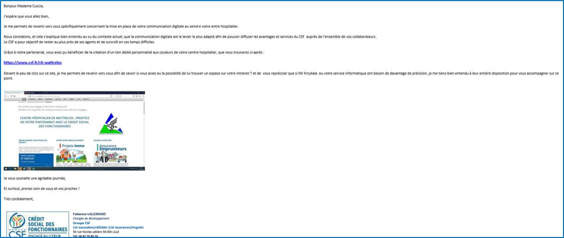 - Objectif pour le partenaire : animer la convention de partenariat par un moyen de communication moderne et à disposition de tous les agents : assurer une présence du CSF sur les outils internes de l'administration partenaire.