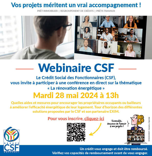 Le 28 mai 2024 a eu lieu la 4ème édition des webinaires nationaux du CSF. Quelques 600 agents étaient inscrits pour s’informer sur la thématique de la rénovation énergétique. Découvrez-en le replay !