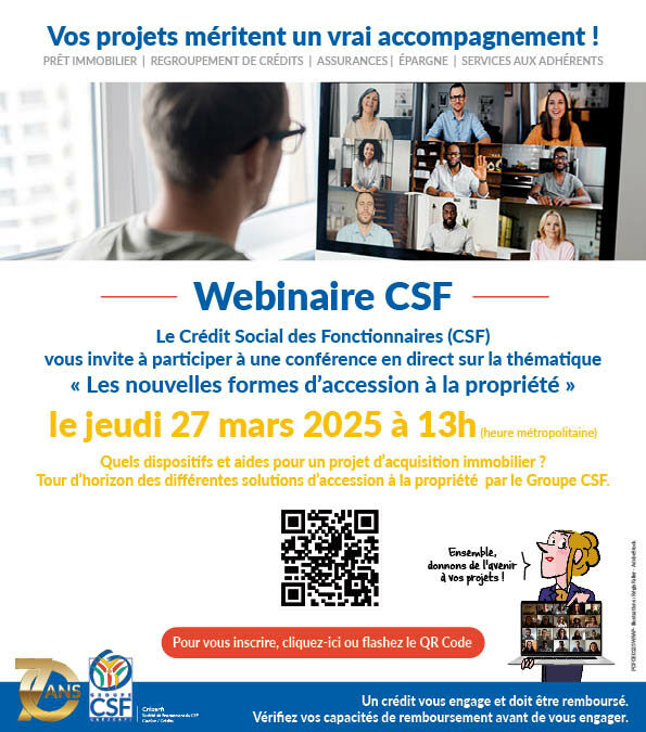 A vos agendas pour le prochain webinaire national du CSF. Rendez-vous le jeudi 25 septembre pour évoquer la thématique « Acheter dans l’ancien pour se loger ou investir ».