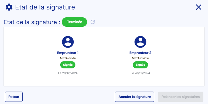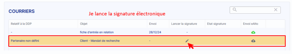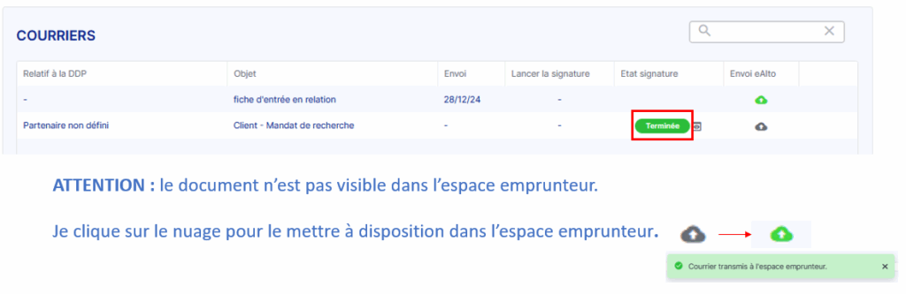 L’envoi du document sur l’espace emprunteur NE lance absolument PAS la signature électronique.