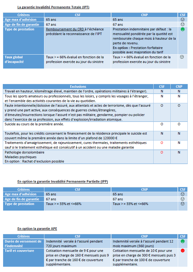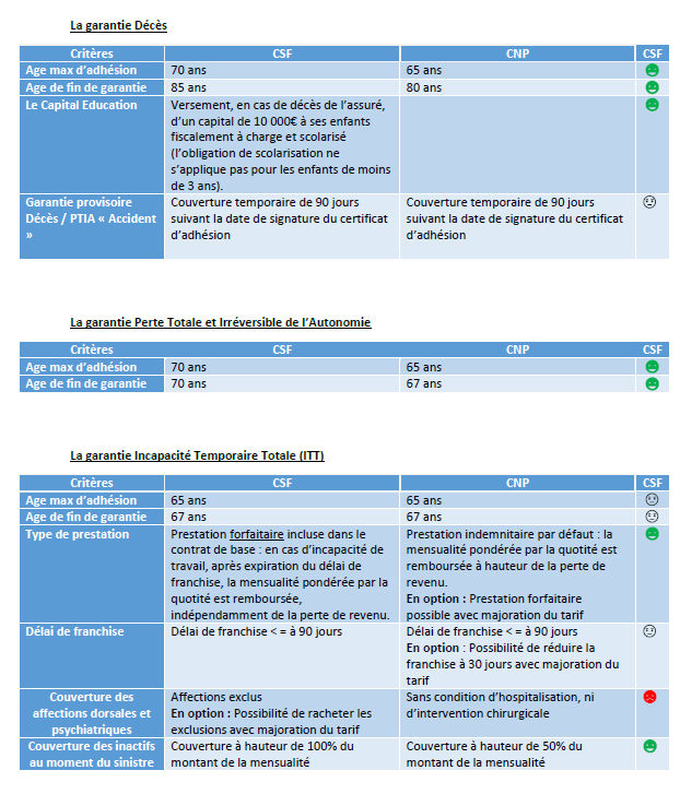 A noter, la comparaison est basée sur le socle de base et ne tient pas compte de l’option qui est proposée par le contrat CNP mais a un tarif plus élevé.
