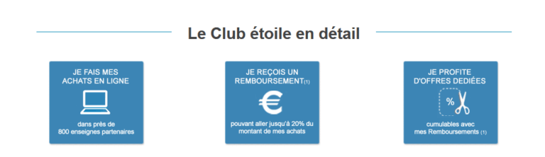 Le convention « Etoile » donne accès au « Club Etoile », et leur permet de bénéficier de réductions et de remboursements lors de leurs achats en ligne auprès de leurs partenaires.