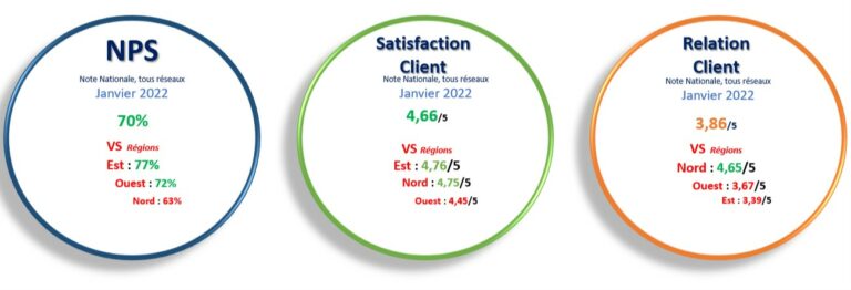 *La note de satisfaction client est la moyenne de toutes les notations sur 5 reçus, tous parcours confondus (Questionnaires Réseaux).