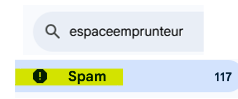 Je demande au particulier de rechercher « espaceemprunteur » dans sa boîte mail, et de vérifier ses courriers indésirables.