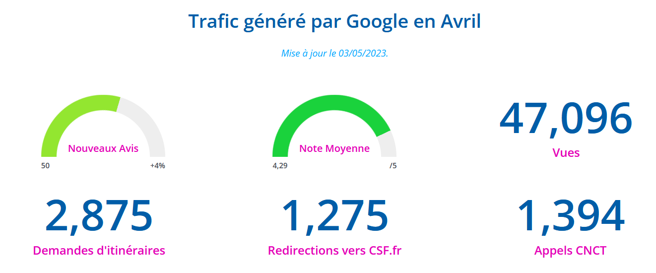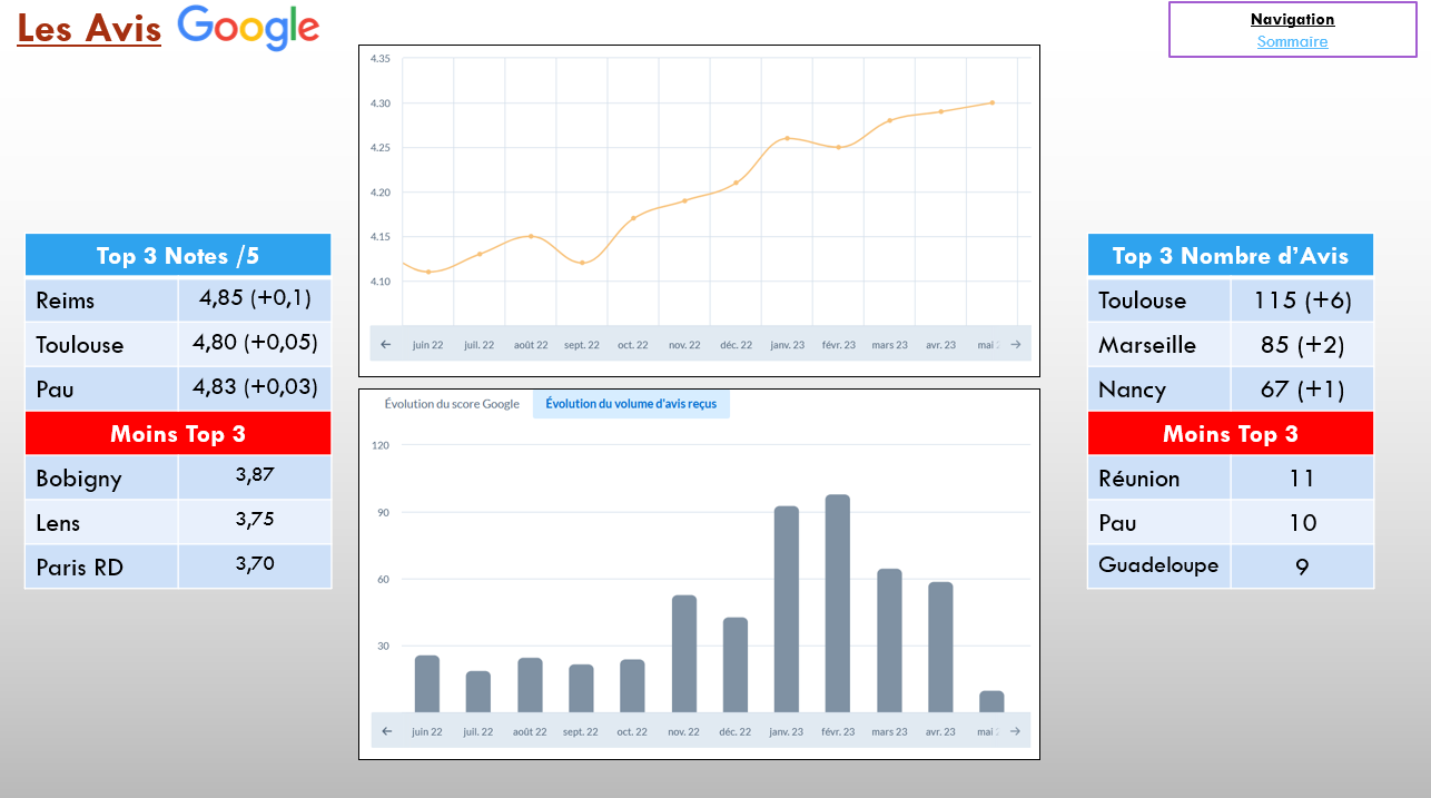 Bravo à Reims (+6 avis), Toulouse (+6 avis) et Tours (+5 avis) ! Nous cumulons au 30 avril 2023, 1 199 avis sur Google.