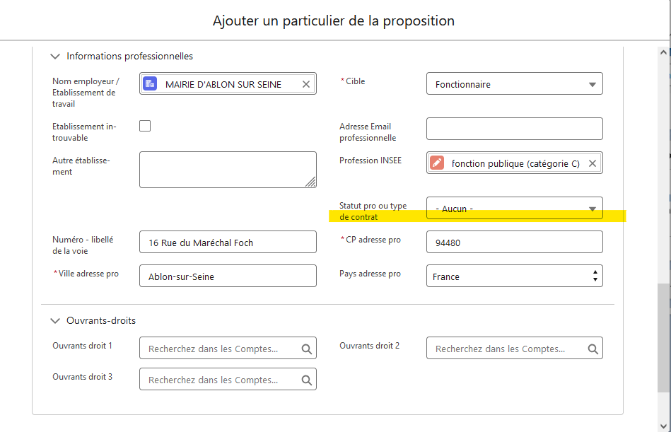 Pour rappel, ce champ est obligatoire pour créer la proposition et accéder à Cifacil.