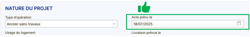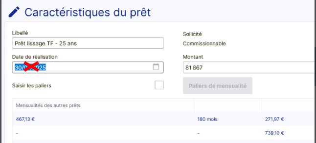 En effet, si cette date est différente de la date d’« Acte prévu le » (onglet Projet), la durée du prêt sera erronée.