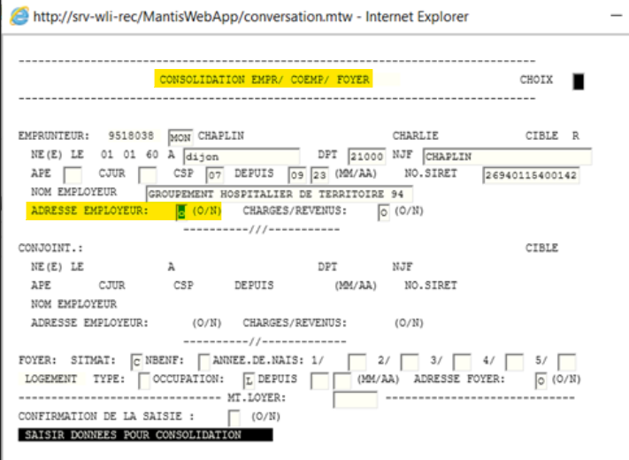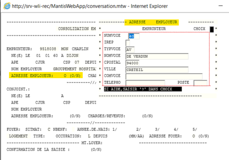 Attention, si la CSP est renseignée à 07 ou 08, l’adresse employeur passera à « N ». Il faut donc modifier et passer à « O« .