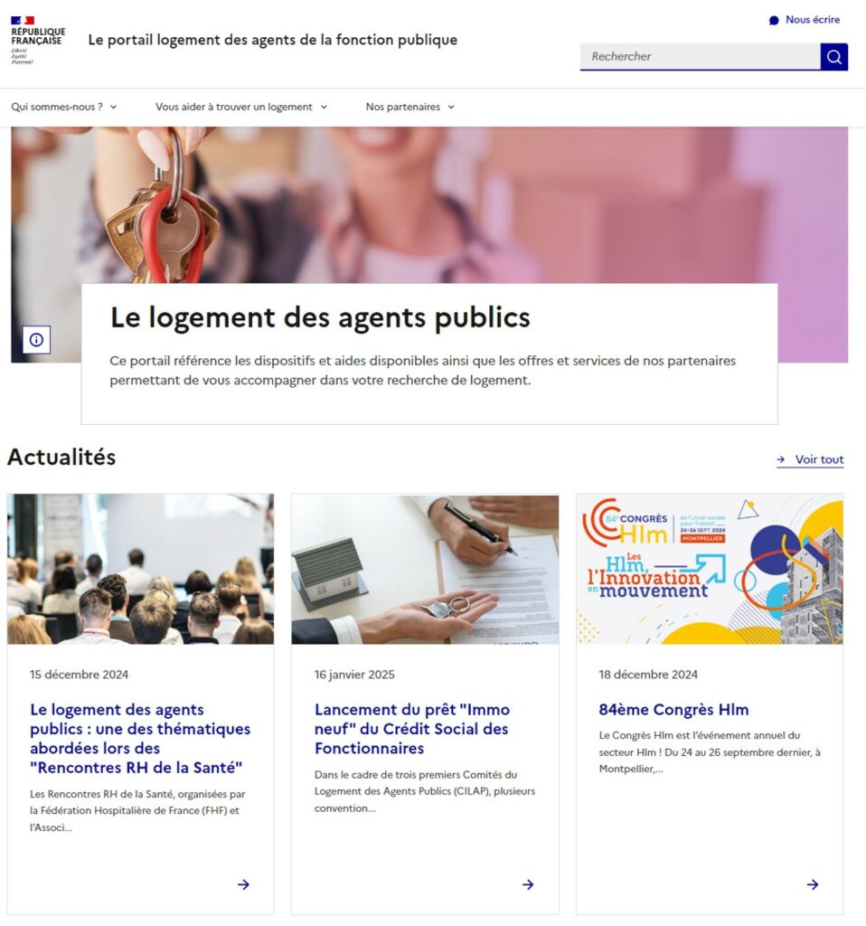 A l’initiative de la DILOAP (Délégation Interministérielle au Logement des Agents Publics), qui n’a pas malheureusement par survécu aux remaniements gouvernementaux, le portail logement des agents de la fonction publique a toutefois été lancé en décembre 2024 sous l’égide de la DGAFP (Direction Générale de l’Administration et de la Fonction Publique). Et quelle notoriété supplémentaire puisque le CSF a réussi à s’y faire une belle place.