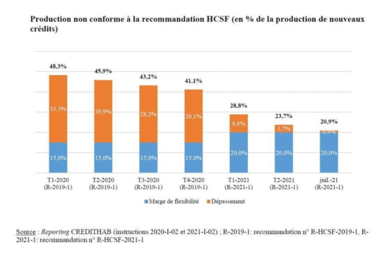 Les règles ne changent pas. Le contenu des recommandations ne change pas : le taux d’endettement est fixé à 35 % et ne peut pas être dépassé, la durée maximale de crédit est de vingt-cinq ans, le taux de dérogation est fixé à 20 % (pourcentage de dossiers pour lesquels la banque peut déroger à ces règles).