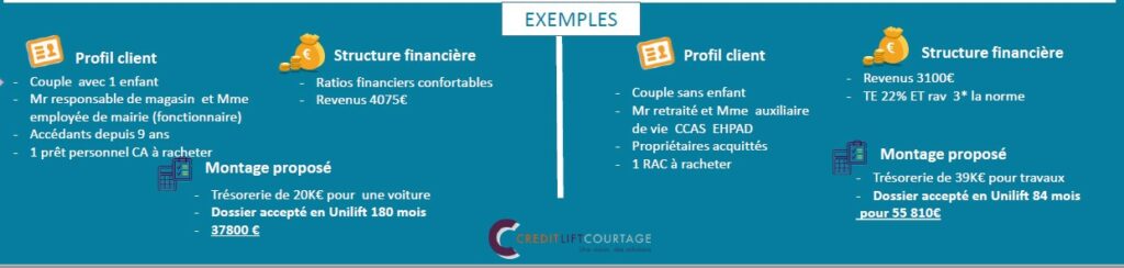 Ces produits (Unilift pour Créditlift et Prêt Projet pour Créatis) offrent la possibilité de reprendre une unique ligne de crédit existante ET de réaliser un financement additionnel non affecté.