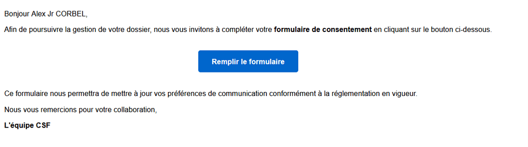 - Le particulier recevra un e-mail pour le recueil du consentement.