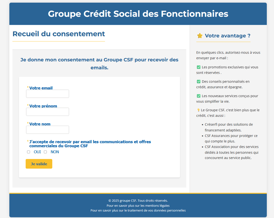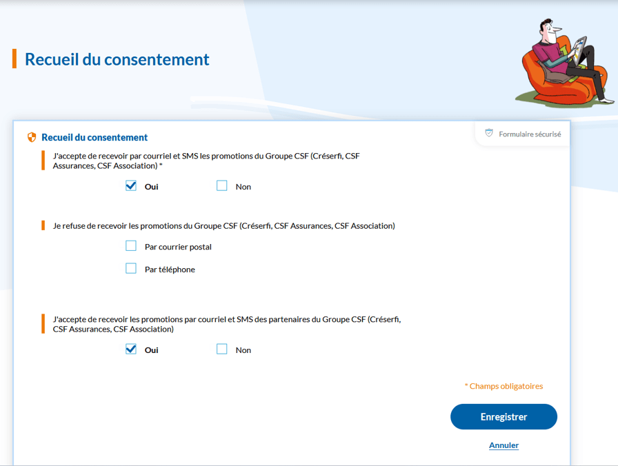 - Le particulier accèdera alors au formulaire de recueil du consentement.