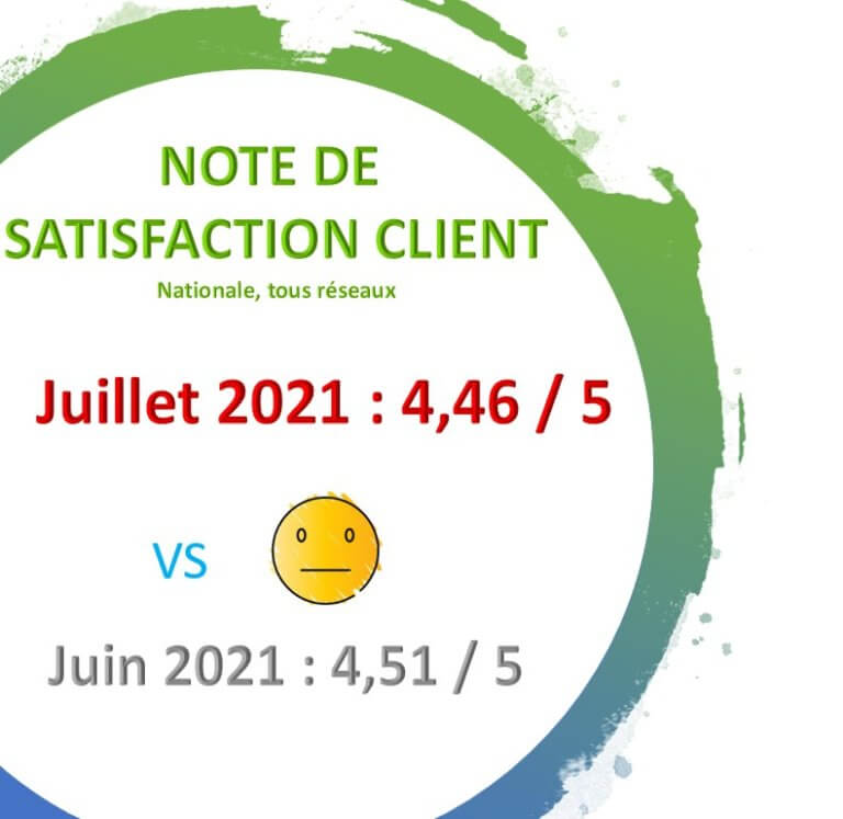 *La note de satisfaction client est la moyenne de toutes les notations sur 5 reçus, tous parcours confondus (Questionnaires Réseaux).