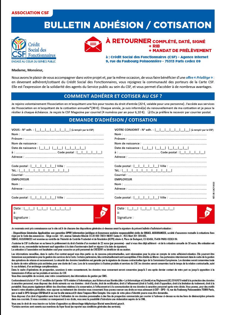 • Le bulletin d’adhésion ne peut pas être signé par une autre personne que l’adhérent (et l’adhérent secondaire éventuel),