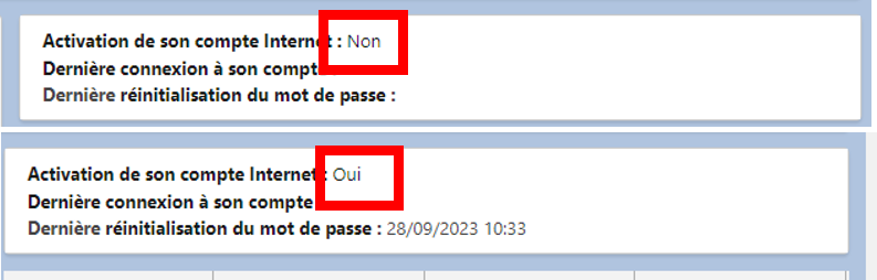 Si l’activation de son compte Internet est à OUI l’adhérent a déjà un compte.