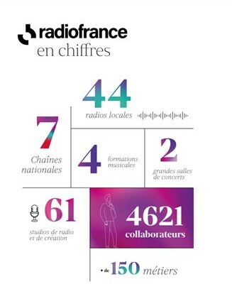 La maison de la radio à Paris, siège de Radio France, rassemble les chaines nationales, telles que :