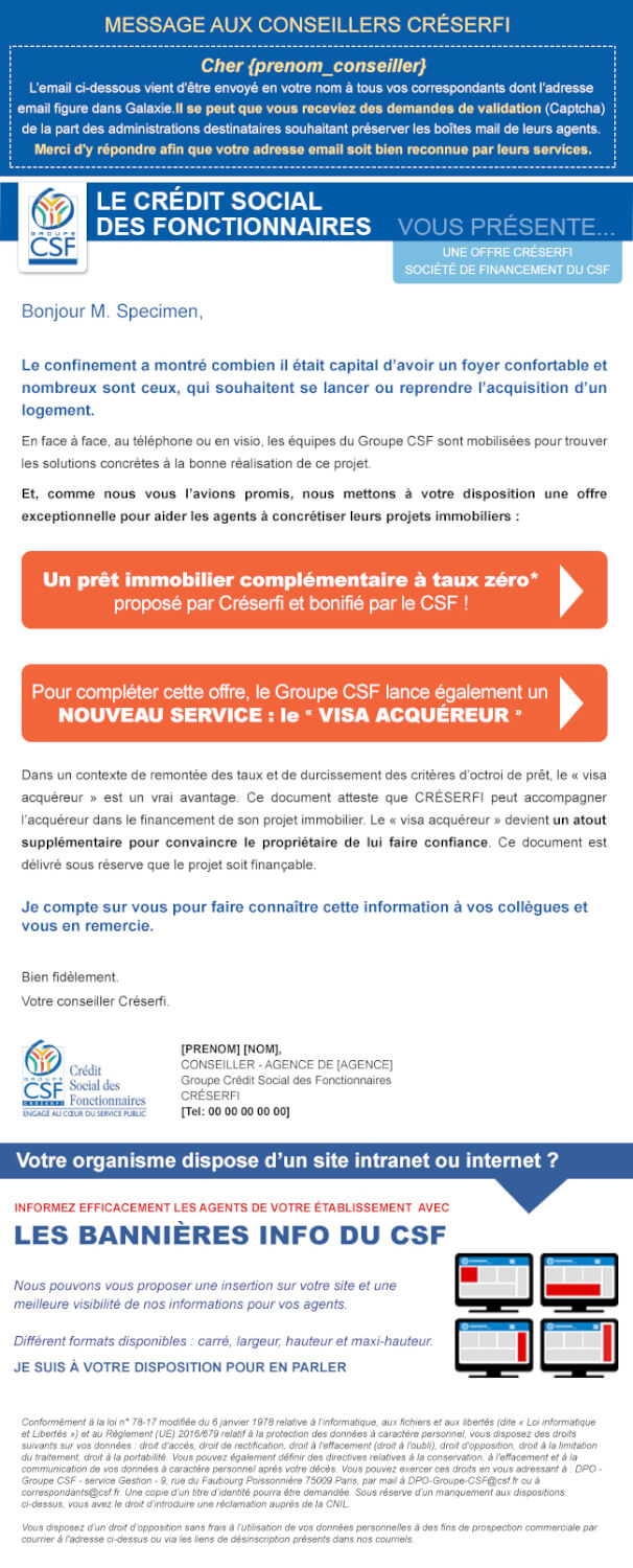 Pour accompagner la reprise d’activité une nouvelle offre sera lancée dans le courant de la semaine 22 (du 25 au 29 mai prochain) ! Une aide exceptionnelle pour aider les agents dans leurs projets d’acquisition immobilière : un prêt à taux zéro !