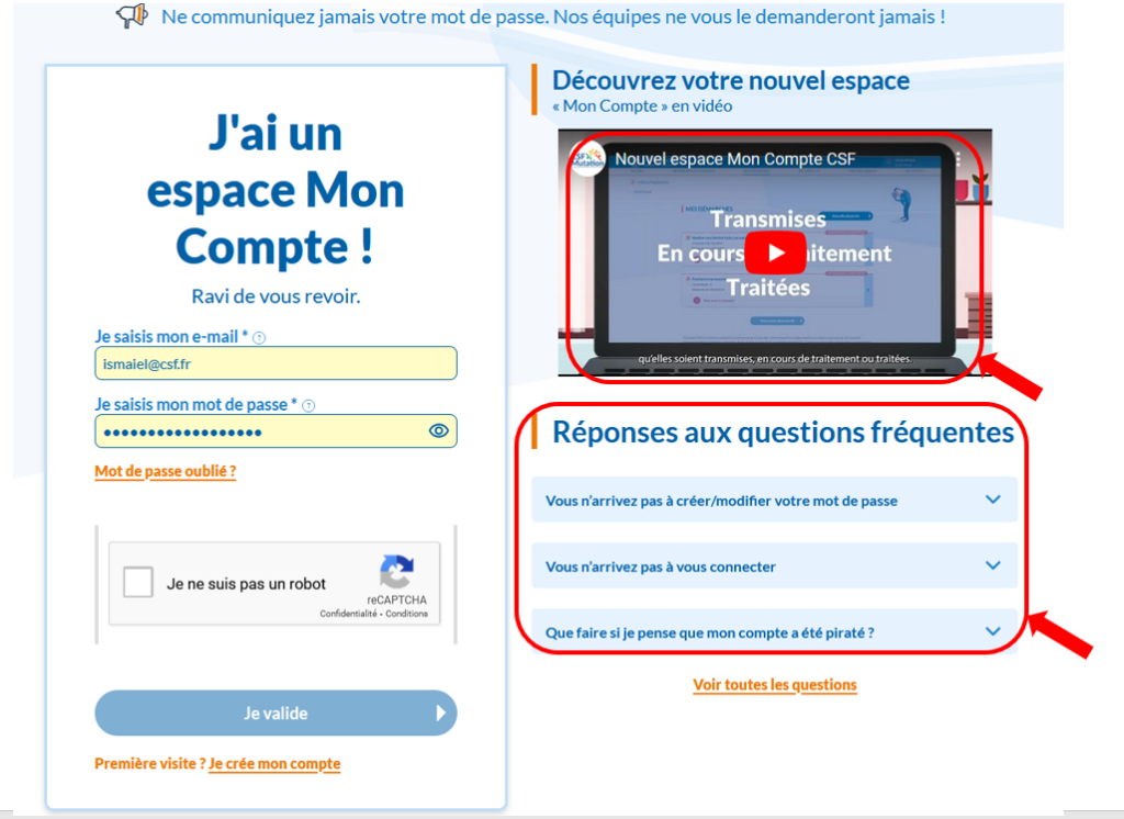 Se connecter, renouveler son mot de passe, faire une démarche, ...