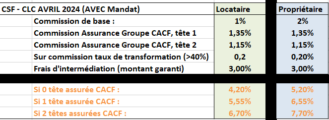 – Le profil locataire ne devra pas dépasser 40% de la production - Une commission Assurance Groupe CACF