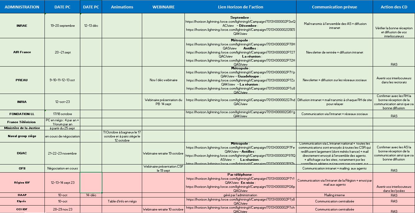 - Permanence conseil nationale : du 9 au 13 octobre avec Préau - le 10 octobre avec l'Elysée - le 12 octobre avec l'INRIA - les 17 et 18 octobre avec la Fondation Louis Lépine - du 7 au 8 et du 14 au 16 novembre avec la SRIAS IDF