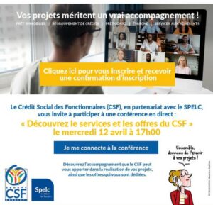 • Le mercredi 29 mai à 17h30 :  un webinaire de présentation des offres du CSF dédiées aux personnels de l’Éducation nationale.