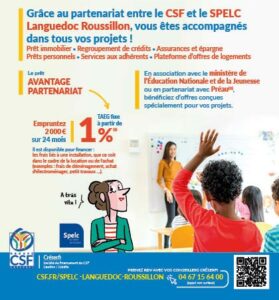 Le CSF, en partenariat depuis une quinzaine d’années avec le SPELC, (La Fédération Nationale du Syndicat Professionnel de l’Enseignement Libre Catholique) souhaite profiter de cette relation pour communiquer au plus près des enseignants du privé.