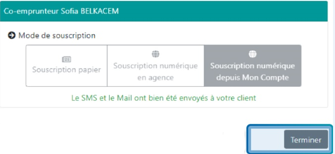 Sur le parcours digital, pour que l’adhérent puisse accéder au questionnaire médical sur tablette en agence ou sur mon Compte à distance, n’oubliez pas de cliquer sur le bouton Terminer dans l’onglet « Contractualisation Récapitulatif ».