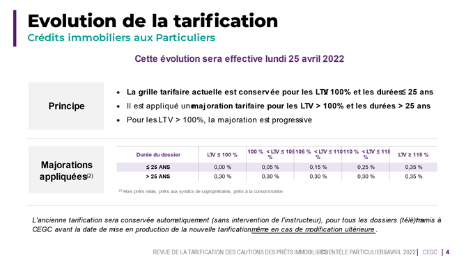 Au 24 avril 2022, la SACCEF a fait évoluer ses taux pour les LTV >100% ou les durées >25 ans. Dès lors, une solution est étudiée pour porter la mise à jour dans VIC directement. Il en ressort une solution incomplète et une facturation de cette évolution trop élevée pour ce qu’elle apporte.