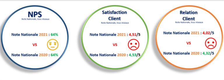 *La note de satisfaction client est la moyenne de toutes les notations sur 5 reçus, tous parcours confondus (Questionnaires Réseaux).