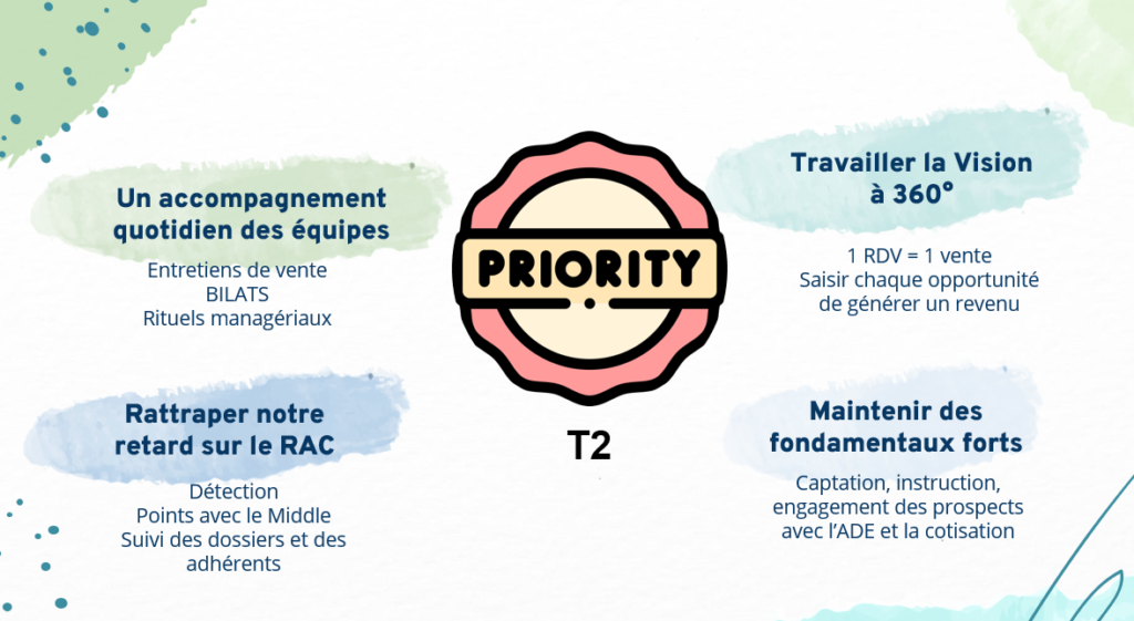 Les séminaires s’ouvrent sur une intervention de Benoît Hoine sur les résultats à fin février. Suivi d’un point par région sur les priorités du T2, à savoir :