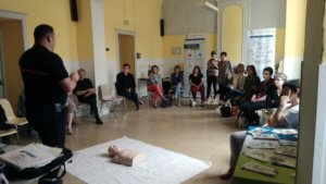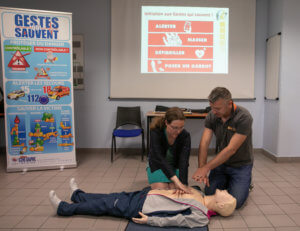 La sensibilisation aux gestes qui sauvent est un module d’une durée d’environ 2 heures, permettant d’aborder les thèmes de la protection, de l’alerte, des hémorragies, du massage cardiaque et enfin de la défibrillation (AMDH).