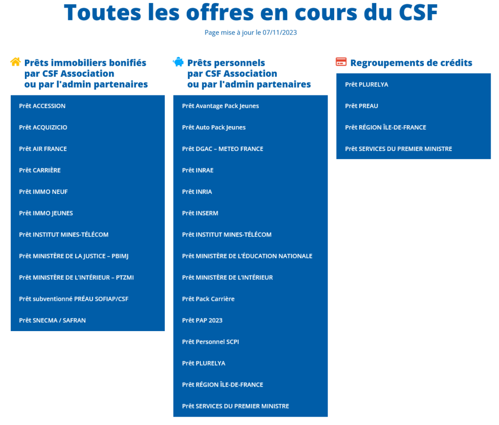 Afin de vous aider à y voir plus clair parmi les offres proposées par le CSF et en fonction de chaque produit, nous mettons à votre disposition une grille récapitulative régulièrement actualisée. Ce condensé d’information, véritable outil d’aide à la vente, vous permettra d’un seul coup d’œil de proposer la bonne solution à vos adhérents !