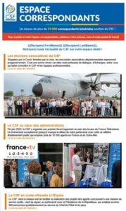 Nos interlocuteurs correspondants reçoivent de manière trimestrielle toutes les nouvelles actualités de leur espace dédié. Mardi 19 mars prochain, une nouvelle enews leur sera adressée !