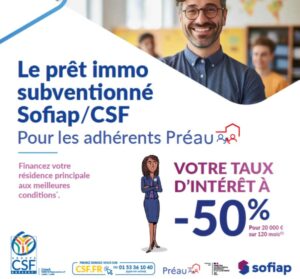La Sofiap et le CSF ont décidé de co construire une offre de prêt bonifié et de s’engager ensemble pour faciliter l’accès à la propriété des agents de l’ Éducation Nationale adhérents à Préau.